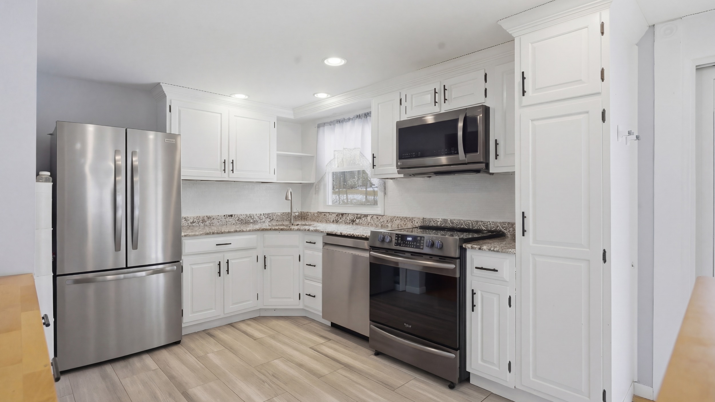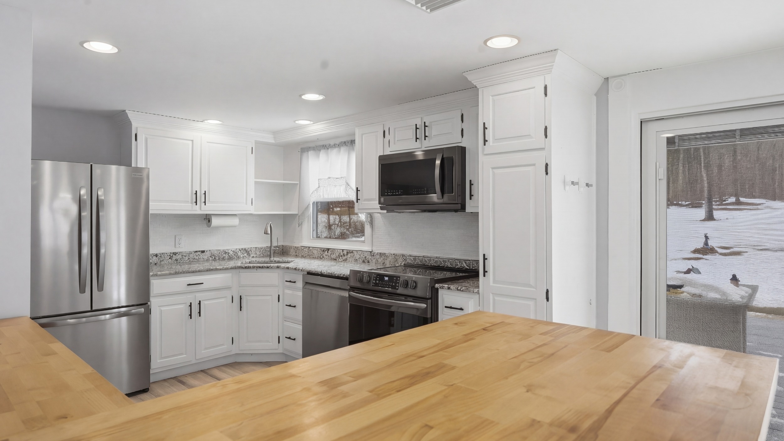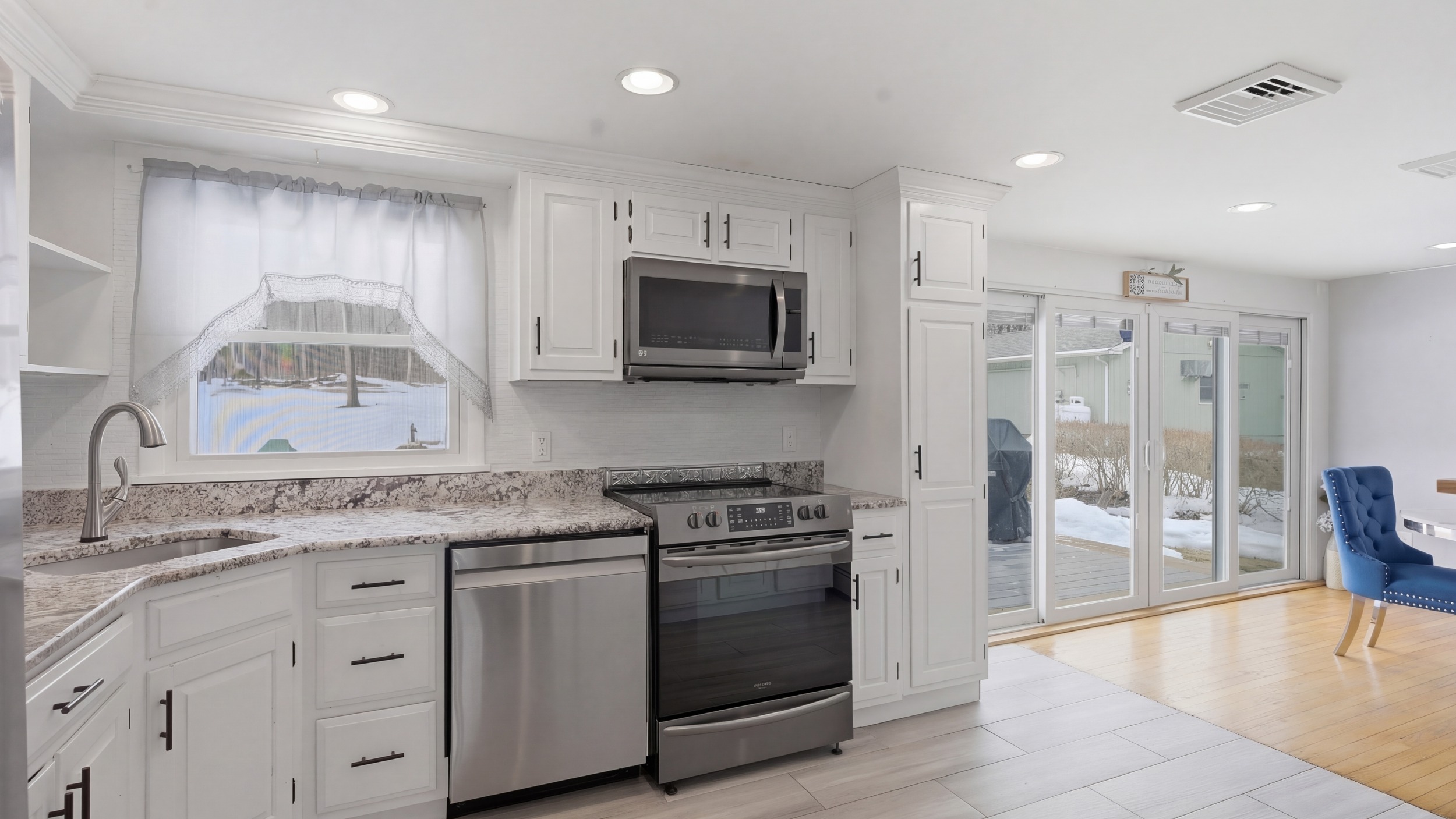 Impeccably maintained home set on a picturesque park-like acre. Features a sun-filled living room with vaulted ceilings and a